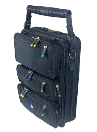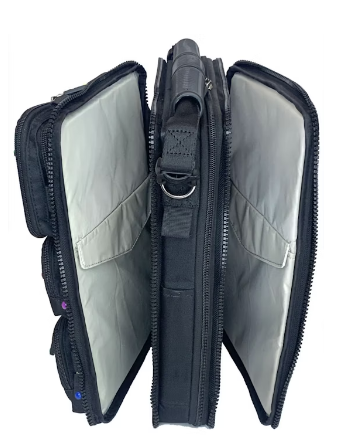 Exterior of entire bag: 14.0" tall, 10.5" wide, 3.75" deep. (36cm x 27cm x 9.5cm)