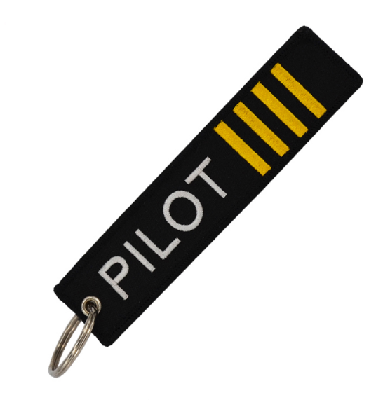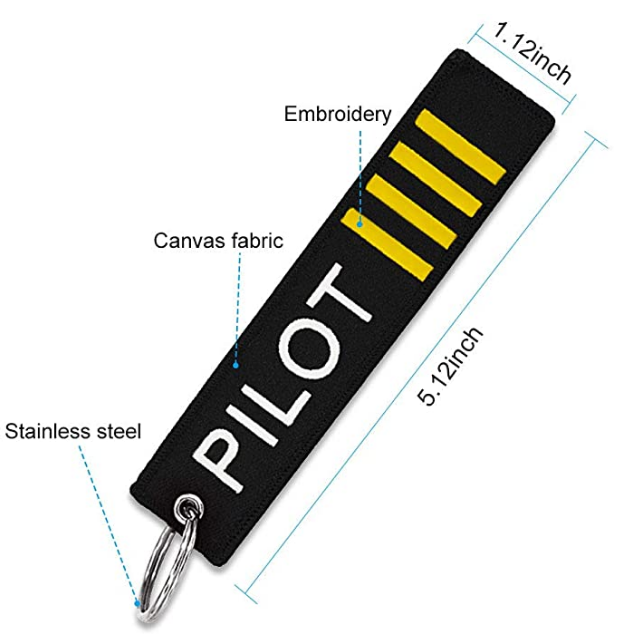Features raised embroidered lettering on both sides of a stiff, durable, merrow-bordered material. It measures 5" x 1.5" and includes a large steel ring for all types of keys.