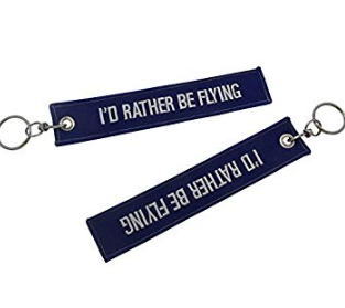 Embroidered I'd Rather Be Flying Keychain. This heavy duty Keychain is embroidered on both sides and bound on all four sides. 6 inches long.